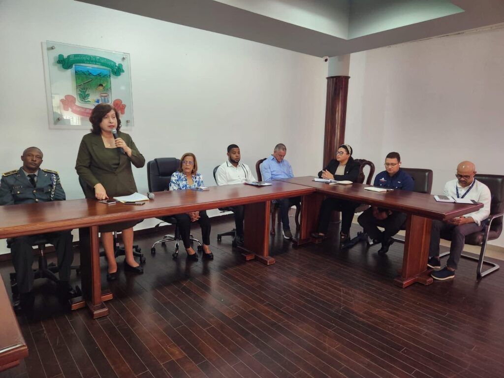 Municipio de Tamboril, provincia de Santiago.– El Ministerio de Interior y Policía, en coordinación con el Ayuntamiento de Tamboril, realizó un encuentro de la Mesa de Seguridad Ciudadana y Género, con la participación de juntas de vecinos, federaciones comunitarias y diversas entidades sociales, con el objetivo de dar seguimiento a las acciones dirigidas a fortalecer la convivencia y el orden en el municipio.