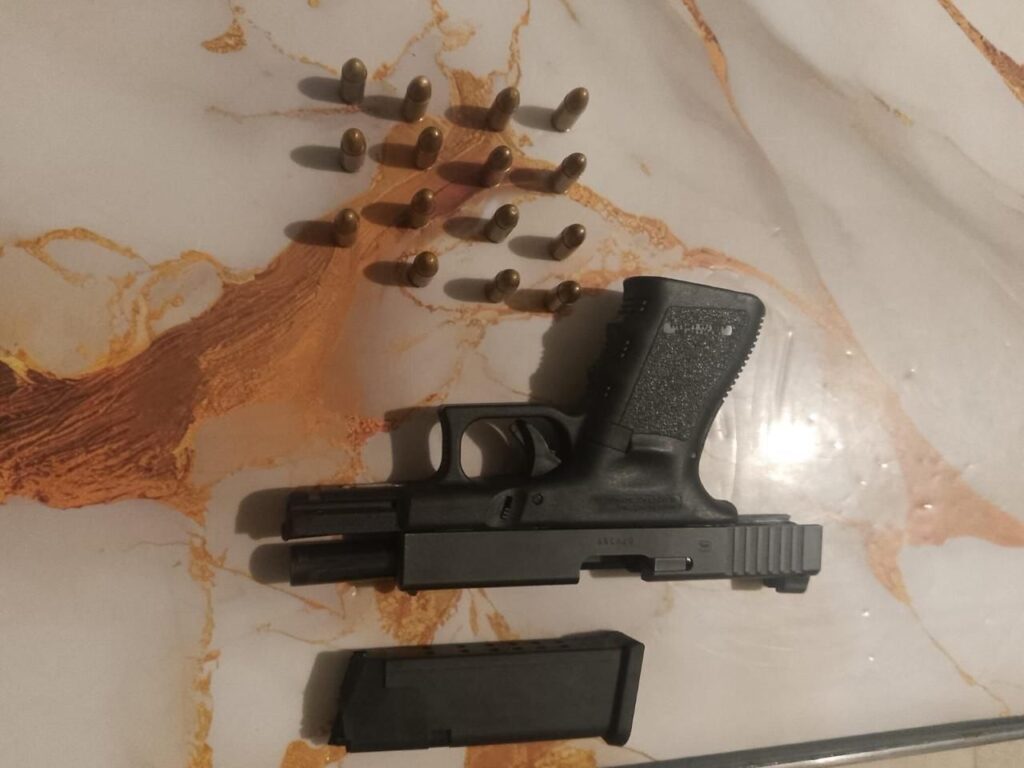 Al momento de su apresamiento, los agentes actuantes le ocuparon una pistola marca Glock 19, calibre 9mm, la cual portaba sin documentos. En el interior del vehículo se encontraba el ciudadano víctima, residente en la provincia La Vega, quien estaba retenido en condición de rapto.